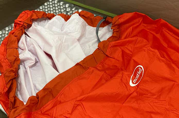 サイズがきつめのシュラフカバーを使用してダウンが潰れてしまうと、シュラフ本来の性能が発揮されなくなってしまいます。