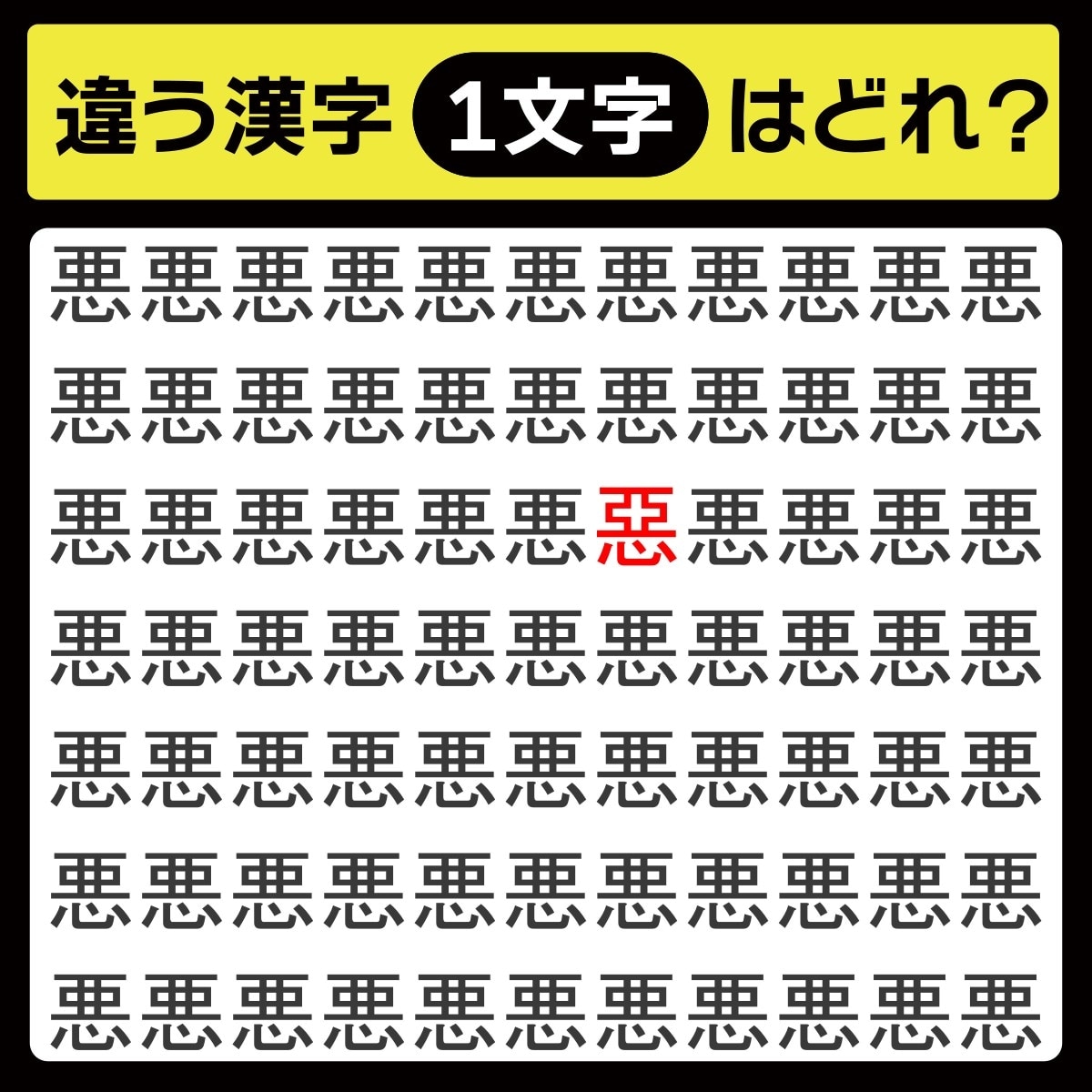 「悪の中に隠れてるのは?」漢字間違い探しで脳トレしよう!【毎日脳トレ】【クイズ】