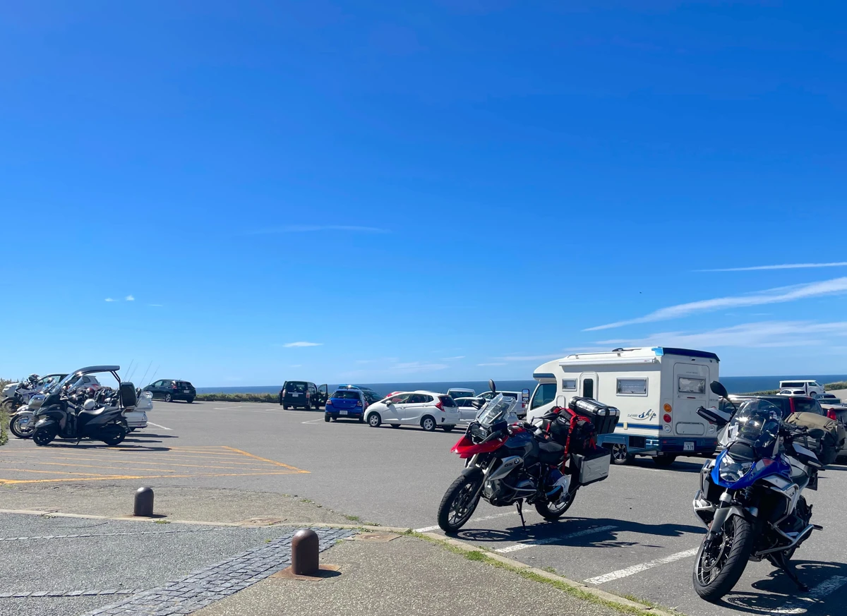 ちなみに襟裳岬の駐車場はこれまたあろうことか全体的に斜めっており…一応バイク専用スペースが用意されていますが「強風+傾斜」でバイクが停車中に倒れてしまうケースもあるので(ツーリングマップルにも書いてます)なるべく傾斜の少ない場所にバイクを停めましょう(ここ重要です)