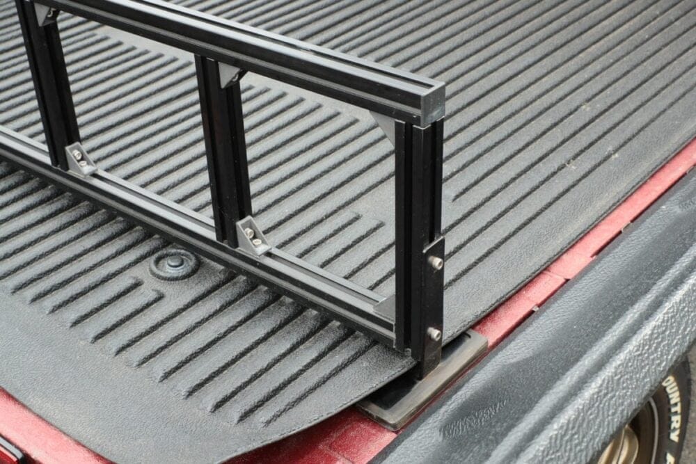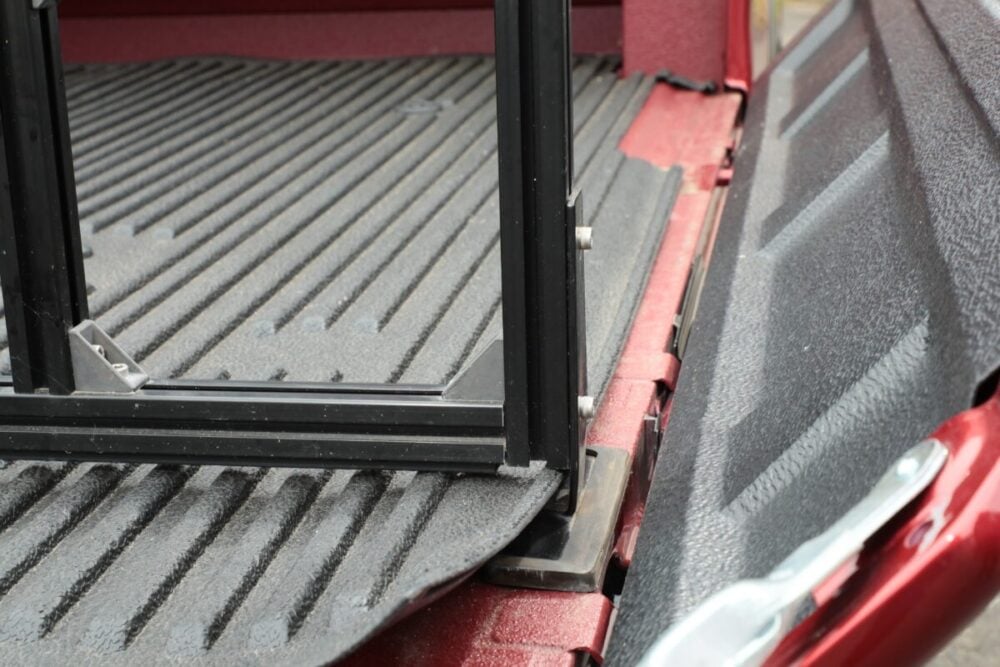 場荷台セパレーターの土台プレートを荷台の両端の平らな場所に置く。