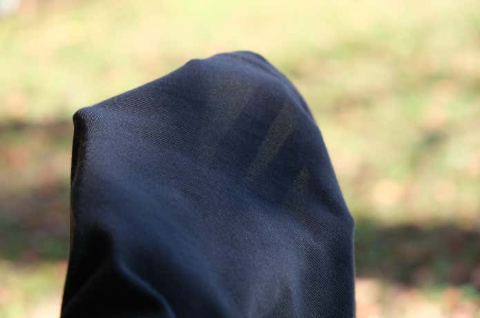光にかざすと、うっすら手が透けるくらいの生地感。なんと、防臭機能まで備えています。
