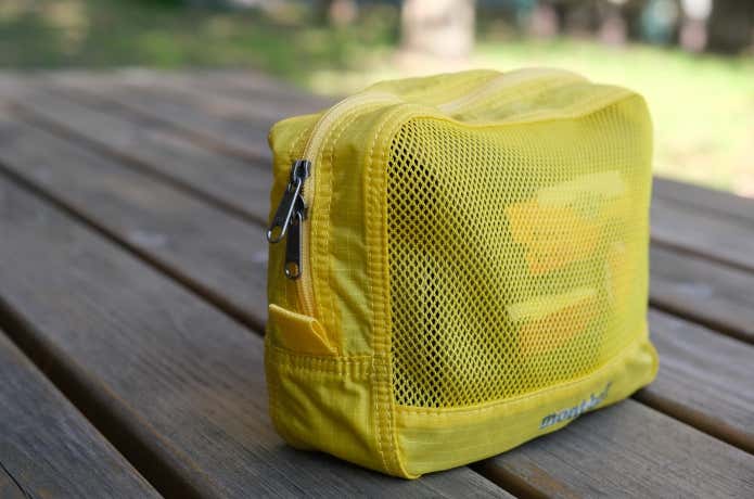 超軽量素材でできたシンプルなポーチ。登山や旅行時の小物入れとしてはもちろん、日常使いにもマッチ。