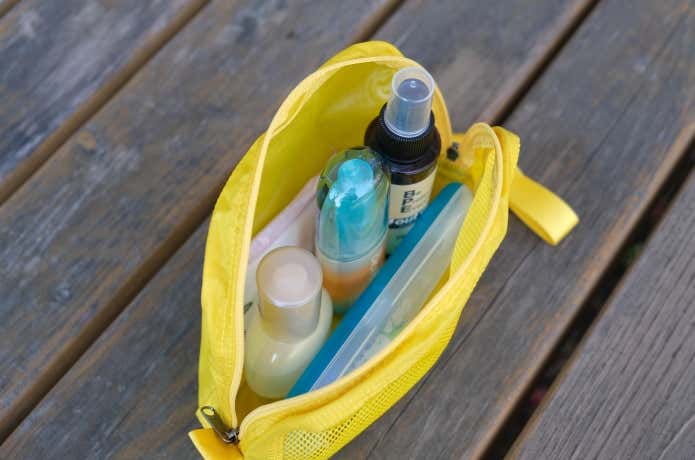 日焼け止めや虫除けスプレーといったやや高さのあるボトル類も、長さのある歯ブラシセットもすっぽり!なにかと“ちょうどいい大きさ”なんです。