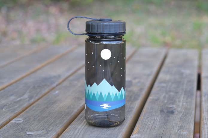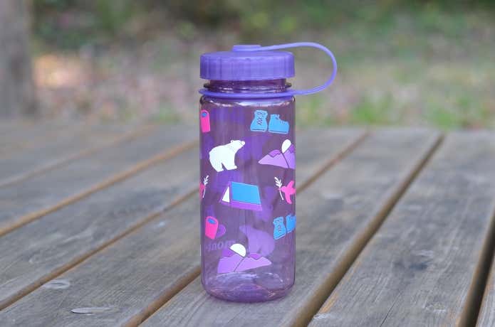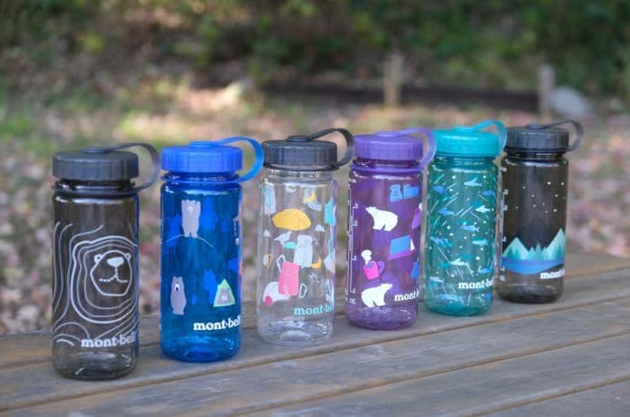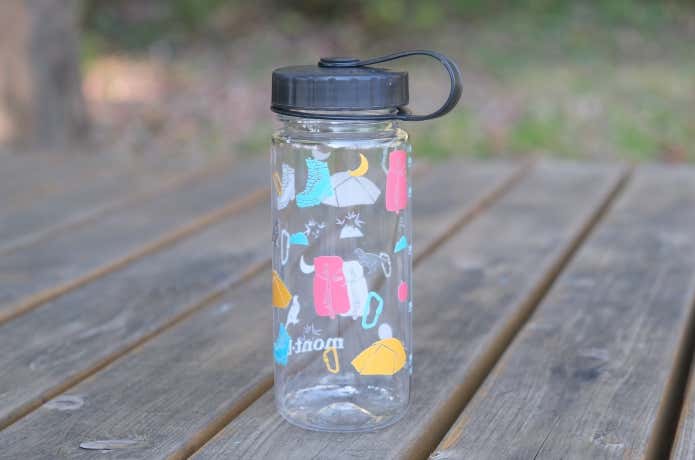 山の景色や動物、登山用品が描かれたデザインがかわいい、透明タイプの軽量ボトル。“映えるモンベル”として、SNSでも人気の高い一品です。
