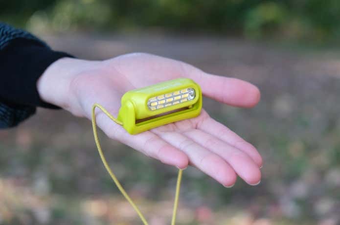 手のひらサイズの超軽量な小型ライト。テント内はもちろん、非常時や夜の散歩にも役立つ万能アイテムです。
