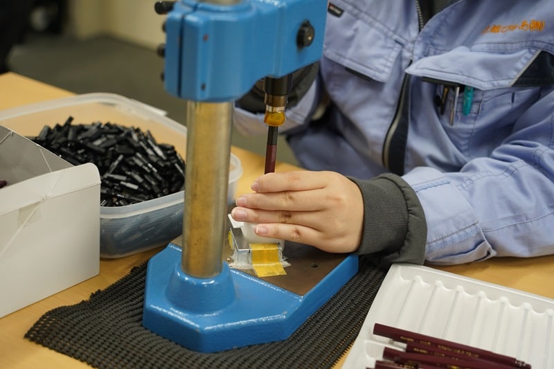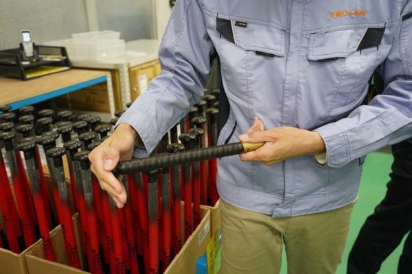 同社の一角に、軟式野球用のバットを製造するスペースが作られ、そこで、職場指導員のほか、約5人のCS社員が作業に当たっていた。約3年前から、ここで働いている20代の男性CS社員は、仕上がりの最終工程となる、バットのグリップのテープ巻き作業などを担当。男性は「最初はうまくテープが巻き付かなかったけれど、周りの人に教えてもらってから、できるようになった。完成するとうれしい。今後の課題はもっと早くテープを巻けることです」と元気に話してくれた。