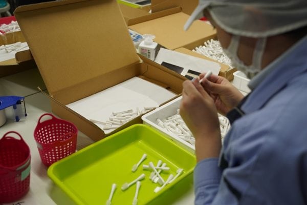 CS社員の担当業務は、菓子箱・日用雑貨の組み立てや検品、荷物の仕分け作業、野球用バットなどの製造にあたるほか、経理書類のデータ化や、PCキッティング、アノテーション作業という、膨大なデータの中から人工知能(AI)に学習させるデータを選別する作業など、障がい者の適性に応じてさまざまだ。