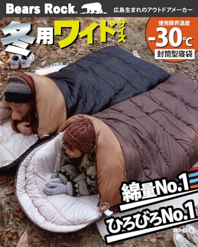 Bears Rock「封筒型寝袋-30℃ FX-503W」は、横幅90cmと広々していて、ゆったり眠れる封筒型のモデル。窮屈なのが苦手な方におすすめです。また、幅広なので毛布を入れて使うこともできます。