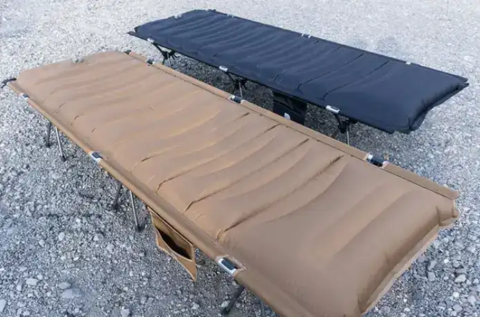 さらに寝心地を高めたい場合は、地面から体を離すことのできるコットを併用するのがおすすめ。地面からの冷気の影響を最小限に抑えることができ、凹凸の影響もなくなります。