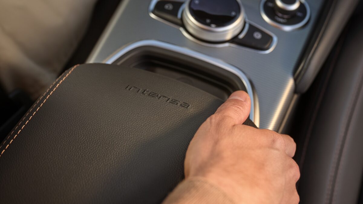 “INTENSA”は、イタリア語で「強烈な」「情熱的な」「力強い」などを意味し、アルファ ロメオの情熱と美学を象徴する限定シリーズとして名づけられました。本シリーズ最大の特長は、ブランドアイデンティティを反映し、細部まで磨き上げた意匠です。外装には、Victory、Value、Exclusivity(勝利の歴史、ブランドの価値、そして特別な存在感)といったアルファ ロメオの哲学を象徴するゴールドのアクセントが施され、彫刻的な美しいボディラインにさらなる存在感と気品を与えています。内装では、タンカラー(淡い茶色)のアクセントと上質な素材を組み合わせ、職人技をもって洗練された美意識を表現しています。