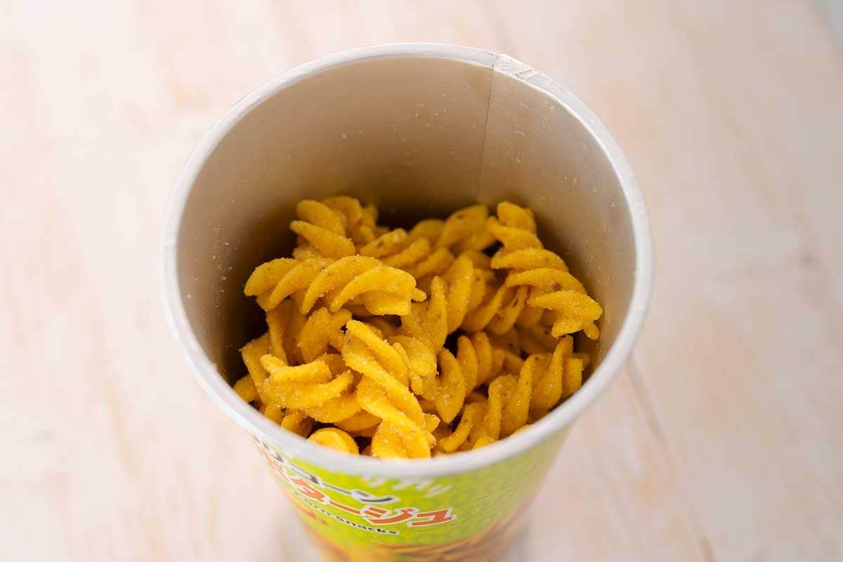 王道のコーンポタージュ味のような味わいだから、コンポタスナック菓子が好きな方にはたまらないはず。