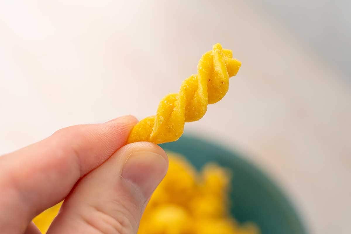 開封すると、コーンポタージュ味のスナック菓子らしい香りが広がります。