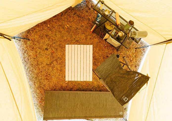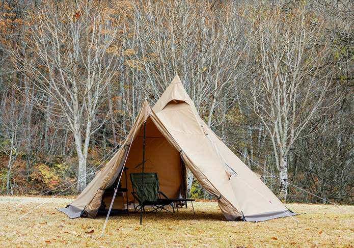 シンプルなワンポール構造で設営が簡単なのはもちろん、天井が高くテント内でもかがまなくてOK。TC素材で遮光性が高いため、夏は涼しく冬は暖かくオールシーズン使用できますよ。大きなベンチレーションで通気性がよく、幕内でも快適に過ごせます。