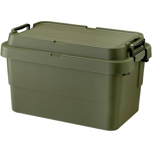 シンプルなデザインで、アウトドアではもちろん自宅でもおしゃれに使えるリス「トランクカーゴ」。耐荷重100kgと頑丈なので、上にスタッキングしたり座ったり、踏み台にもできます。天面がフラットなのでテーブルや物置としても使えますよ。
