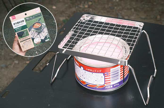 ダイソーで販売している「折り畳み五徳(税込550円)」が大サイズの固形燃料と相性が良かったのでおすすめ!
