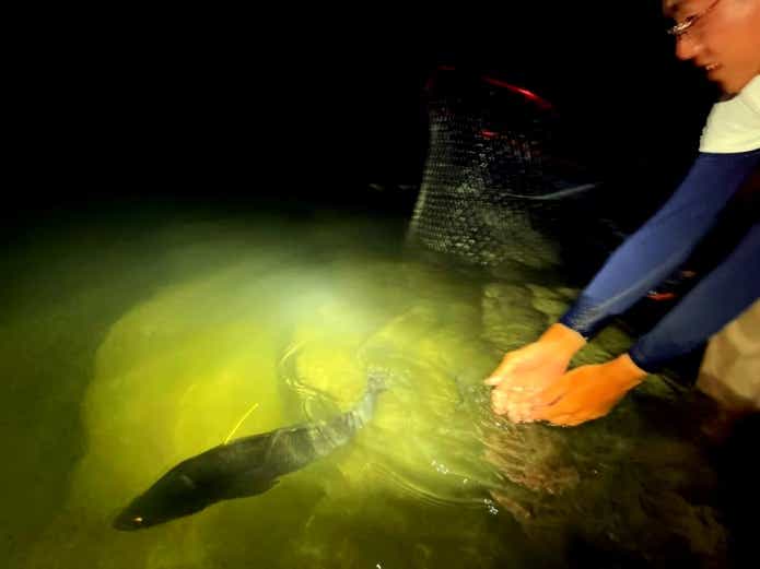 抱卵個体や毒魚などのリリースはもちろん、リリースする時もできるだけ魚に負担のないように心がけています。