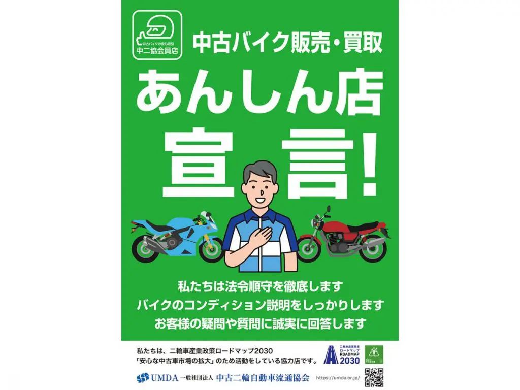2021年11月16日より、ユーザーが安心して中古バイク売買のできる販売店として、「中二協会員店」マークを作成・公開しました。中古バイクの購入や売却をご検討中のユーザー様におかれましては、安心マークの中二協会員店をご利用ください。なお、本件に関するお問い合わせは、UMDAのお問い合せフォームよりご連絡ください。