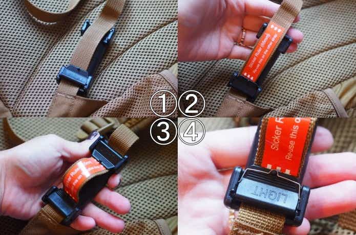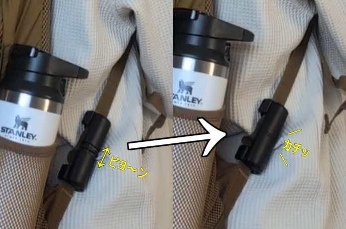 クリップを外して、リュックのベルトに付けるだけ