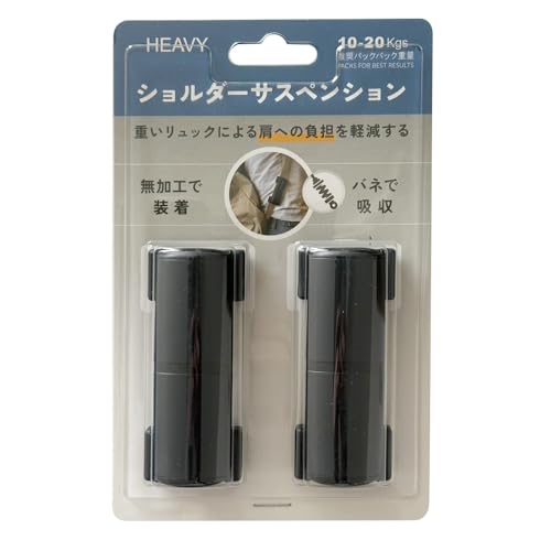 メーカーによると「特殊なバネの力で、荷重を約53%まで軽減」と記載があり、内蔵されているバネが肩への衝撃を吸収してくれるとのこと。実際に装着した部分を引っ張ってみると、かなり強いバネの弾力を感じました。
