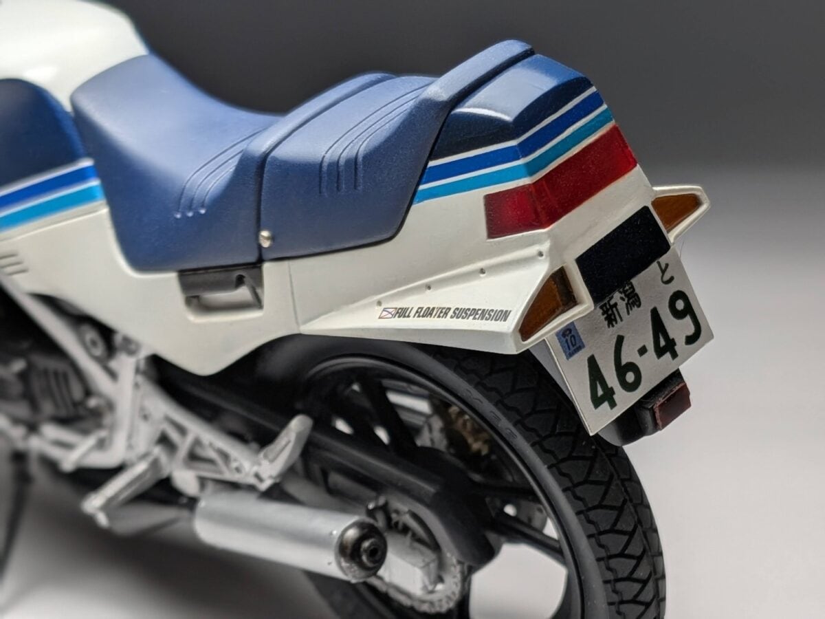 今回 Sho_taro さんが披露した RG250Γ は、バイク模型づくりを始めて間もない頃の一作だそうです。「デビュー当時は強烈な印象だったのに、改めて見るとデザインは正直“?”でした。でも今になるとかえって味に見えてくるんですよね」と笑います。自身の模型についても「今見ると粗い部分もありますが、カウルのスクリーンをヒートプレスで形にしたりして、当時の熱がそのまま残っている作品です」と振り返っていました。