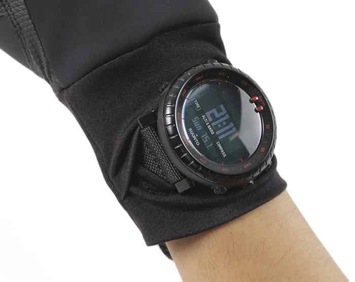 手首までしっかり隠れる長めの裾に切り込みがあり、グローブをしたまま時計の表示をチェックできるのも使いやすい工夫の1つです。