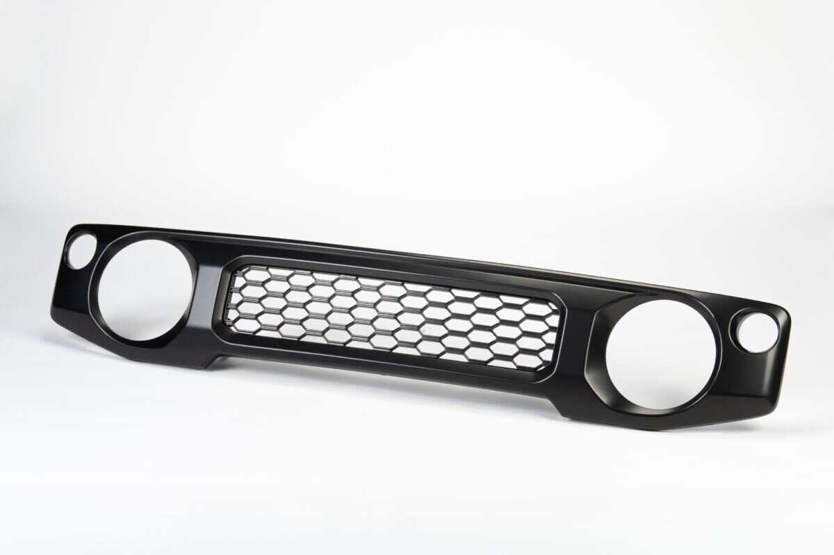 まずひとつ目は、「ABSフロントグリル(塗装済み)」。これはメーカー純正オプショングリルの雰囲気を踏襲したデザインで、落ち着きのあるスタイルが特徴だ。純正の雰囲気を崩さず、ほんの少し精悍さを加えたいユーザーに向いている。