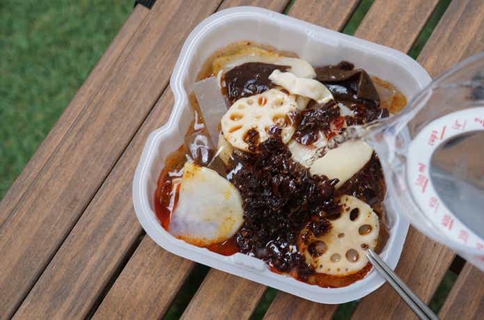 【お湯・火・電気いらず】水だけで完成!?話題の「インスタント麻辣湯」キャンプで使ったらガチ有能です