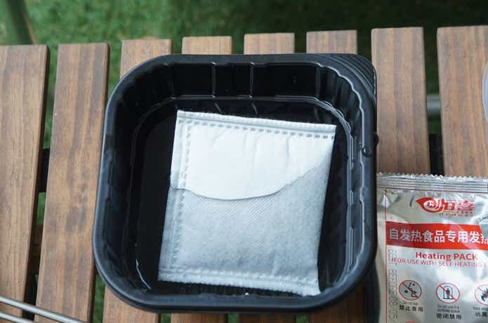 あとは、これで約15分置くだけ。火も電気も不要。冒頭でご紹介したように、ヒートパックが水と反応して発熱する仕組みなんです。