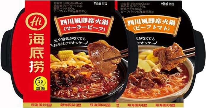 それがこちら。中国の最大手火鍋チェーン「海底撈(カイテイロウ)」が生み出した商品らしく、お湯も電気も火も使わず、15分待つだけで完成しちゃうとか。