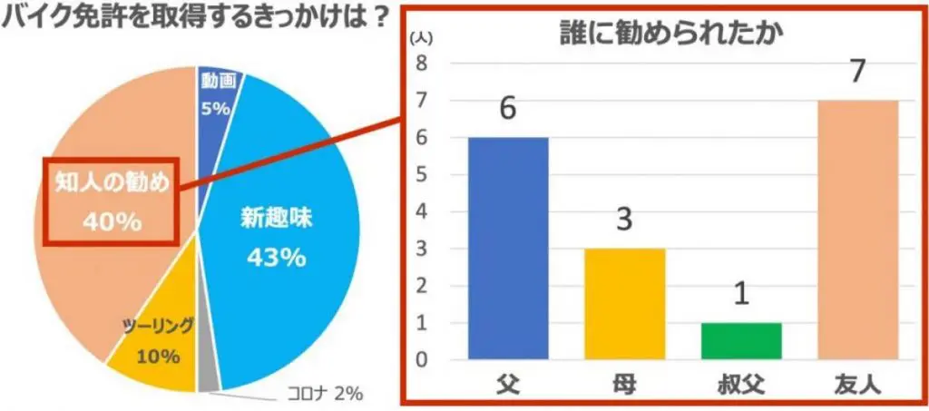 こうした若年層ライダーにバイクに乗り始めたきっかけを尋ねると、両親や親戚の影響で乗り始めたと回答する若年層の割合も増えました。