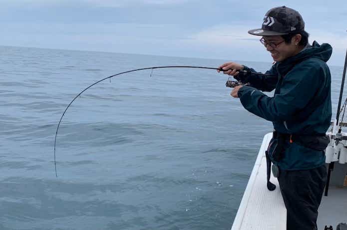 水深50m前後のポイントで、60g程度のジグが扱いやすい汎用性の高いベイトロッドです。