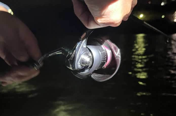 リール表面の凹凸が非常に少なく、ラインが引っかかるトラブルが無いため、夜釣りが主体となるメバリングでもストレスがありません。