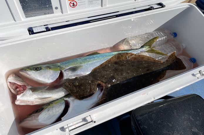 泳がせ釣りで釣れる青物やヒラメは引きが強くてエキサイティング。さらに食味も良いことから、大人気です。