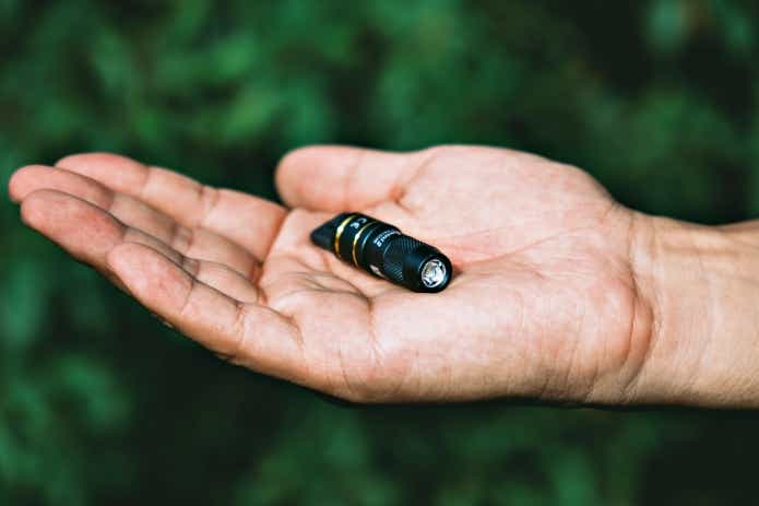 ボディはブラックアルマイト処理のアルミ製で、ミニでも安っぽさは皆無。IPX6相当の防水で突然の雨もしっかり耐え、日常〜アウトドアの“ちょい照らし”に十分対応します。