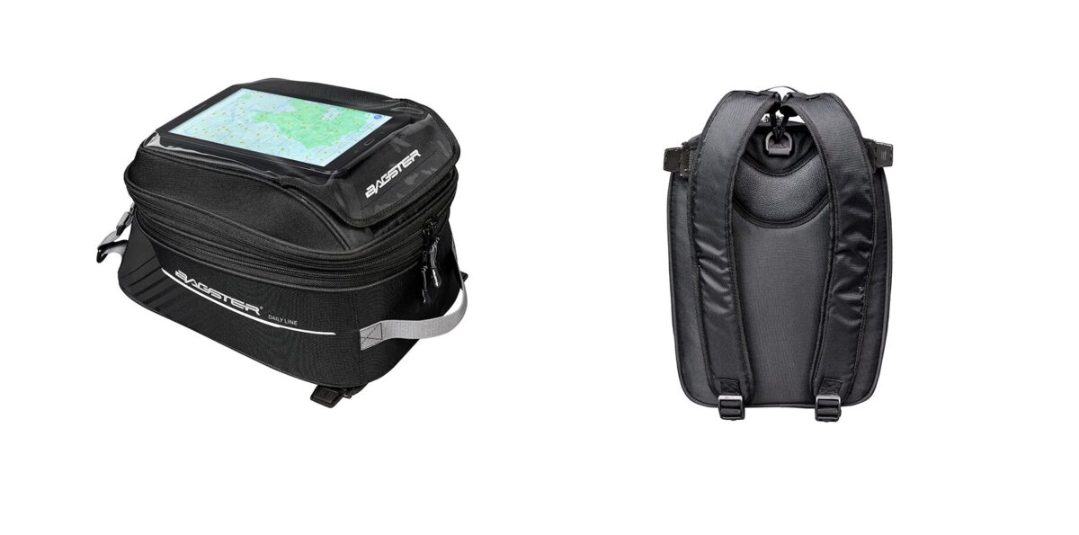 財布やスマートフォン等の身の回り品を入れるのに便利なバグスタータンクカバー専用タンクバック。脱着が容易なので、給油時でも取り外しにわずらわしさは感じないでしょう。外してリュックとしても使えます。