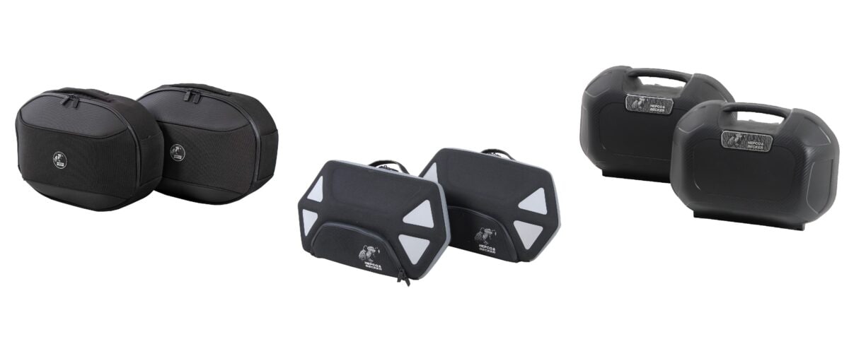 写真左からソフトバッグ Street(片側16L)、ソフトバッグ Royster(片側 15L )、ハードケース オービット(片側15L)