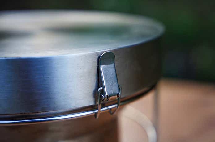 といっても、その構造はごくシンプルで、持ち手付きの蓋と直径8.3×高さ20cmのシンプルな鉄製(アルミメッキ)の筒。