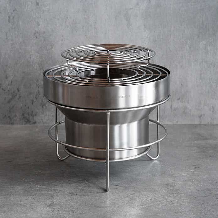伝統的な調理器具である七輪を、現代にフィットするオールステンレス製へと進化。丸洗いOKで衛生的に使え、割れないからアウトドアへの携行も簡単に。