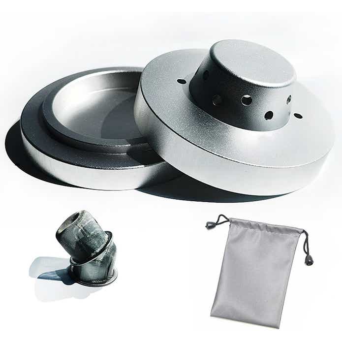 Fieekty「アルミスモーカー」は直径約8.8cmの本体と蓋、金属メッシュ製のフィルターが付属した、コンパクトな簡易スモーカー。
