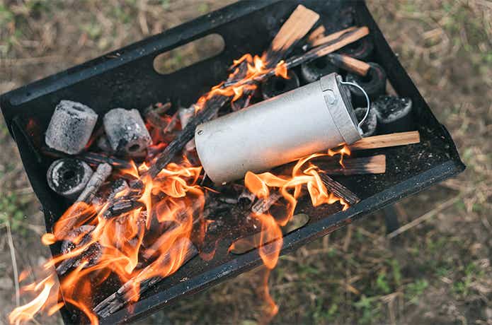 使用後はロック付きの蓋をすれば炭の鎮火もラクちんで、火消し壺も不要。薪を入れれば焚き火台としても使えるなど、1台で何役をも兼ねたスーパー七輪。