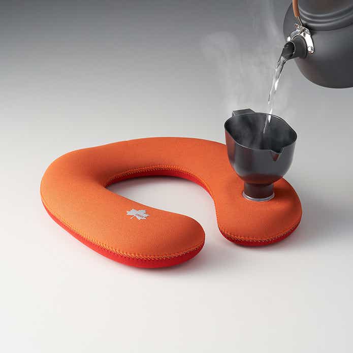 ウェットスーツ生地を使用した柔らかな仕様で、カバーなしで使えるのが魅力のアイテムです。付属のロートを使えば、お湯入れも簡単。でも、なんだかカタチが変……?