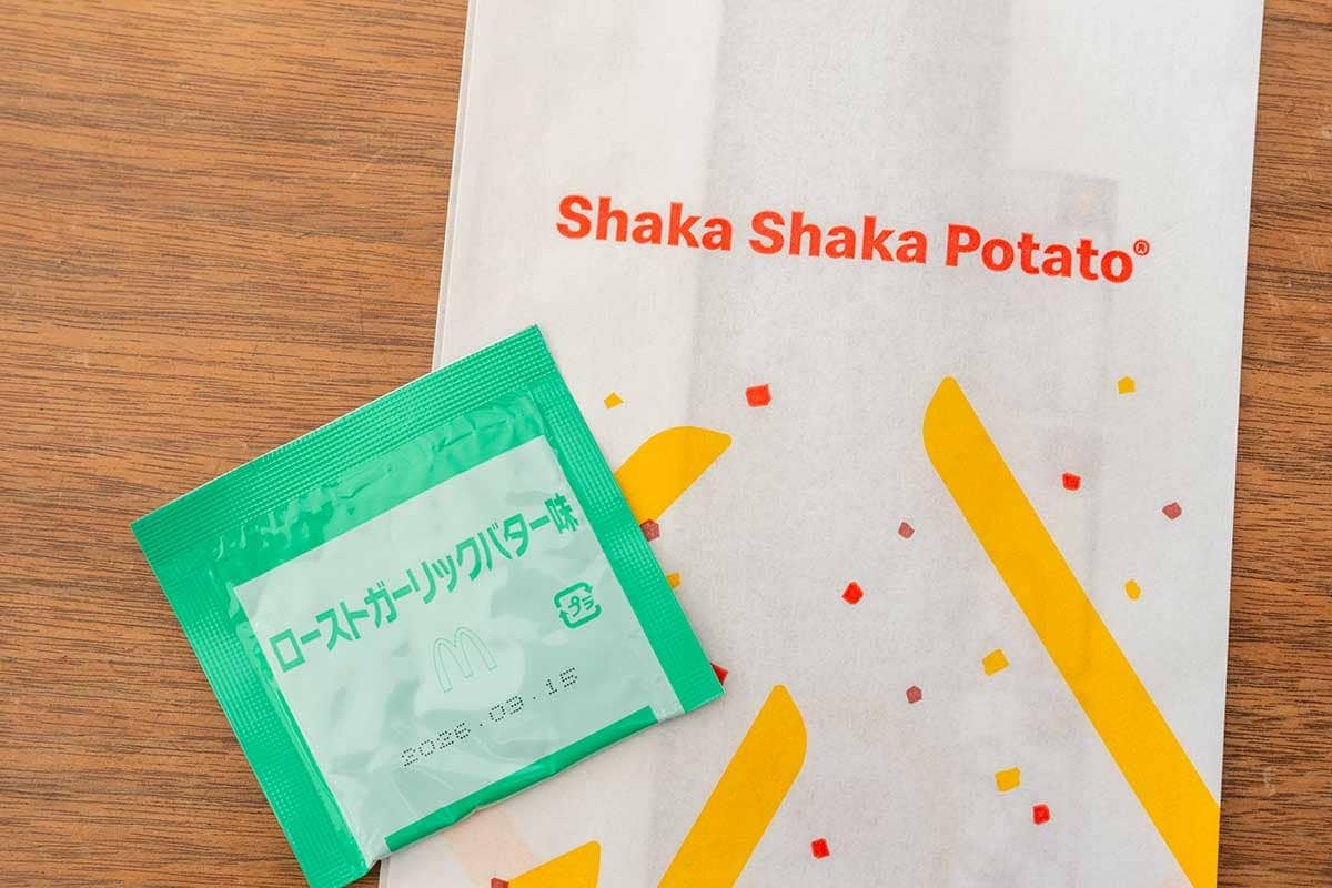 今回はMサイズの「マックフライポテト」と一緒に、「シャカシャカポテト ローストガーリックバター味」を購入しました。