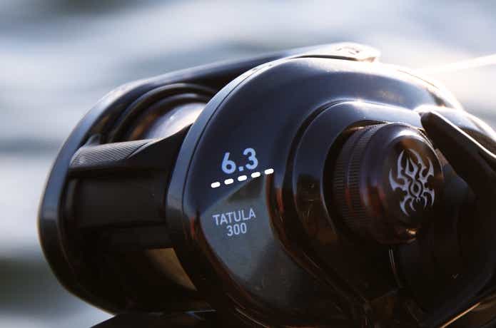 ベイトリールのギア比とは、ハンドル1回転に対しスプールが何回転するかを数値化したもの。