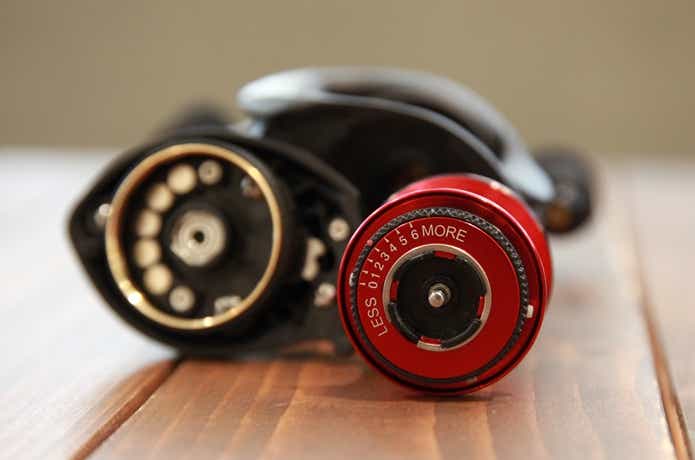 残念ながら、どんなベイトリールでもバックラッシュは起こりますが、バックラッシュしにくい機種かどうかを見極めるために、ブレーキシステムに注目してみましょう。
