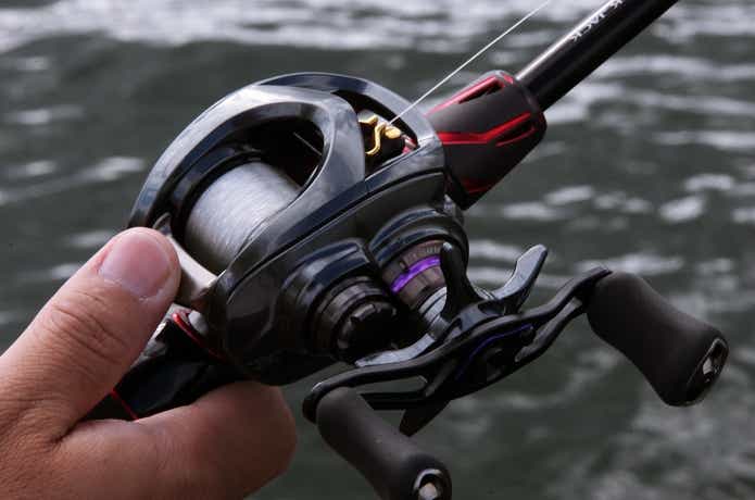 もちろんスピニングリールでも、放出されるラインに人差し指で触れて調整(フェザリング)できますが、操作のしやすさではベイトリールが優勢です。