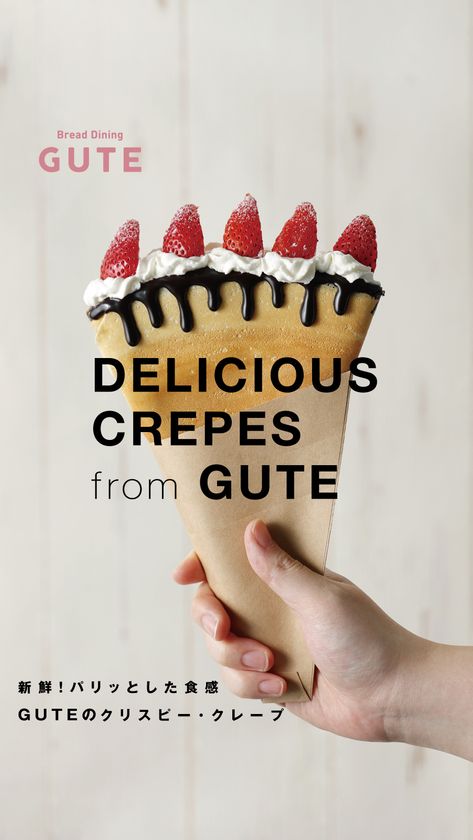 名谷グーテが新たにお届けするのは、従来のクレープの概念を覆す新食感のスイーツ、『クリスピークレープ』です。〇驚きの「音」を奏でるパリパリ食感:生地の外側をカリッと香ばしく焼き上げ、まるで焼きたてのパイのような驚きのパリパリ感を実現しました。〇待望の進化系クレープが名谷に登場:SNSで幅広く話題を集めているこのスイーツは、名谷グーテ限定メニューとして、地域の皆様へついにお届けします。豊富な商品ラインナップ