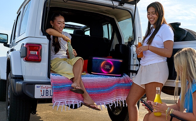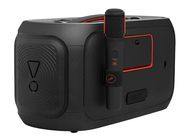 大型サイズでパワフルな重低音を再生。さらに本体がライトアップされるギミックで世界中で人気のシリーズ最新モデル。本製品にはマイクが2本付属され、スマホと連携してカラオケもOK。