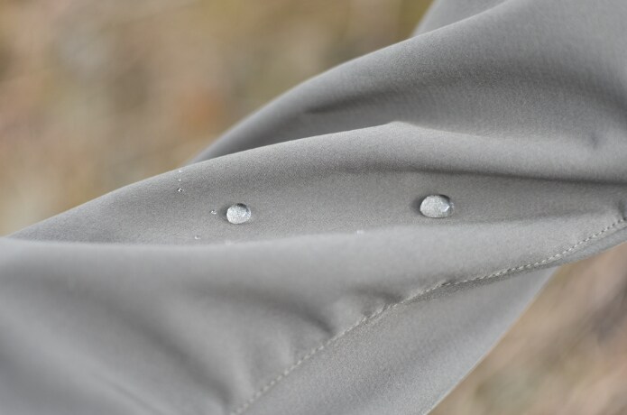 表面には撥水加工が施されているため、小雨や朝露程度なら全く問題なし。レインウェアを出さずに行動を続けられるのは嬉しいポイントです。
