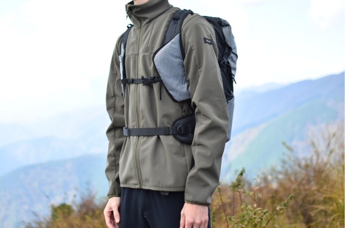 22Lの小型ザックでありながら、チェストベルトだけでなくヒップベルトも搭載されているため、ザックをしっかり体にフィットさせることができるんです。