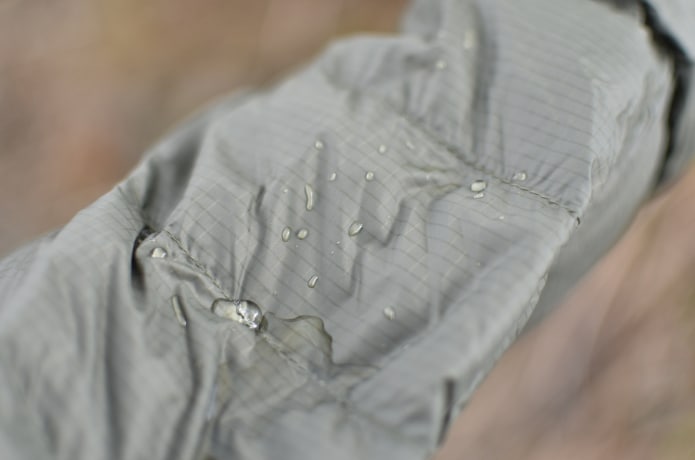 ダウンの天敵といえば「濡れ」ですが、撥水加工により小雨程度なら問題なし。慌てて脱いだり、レインジャケットを羽織ったりせずに済みそうです。